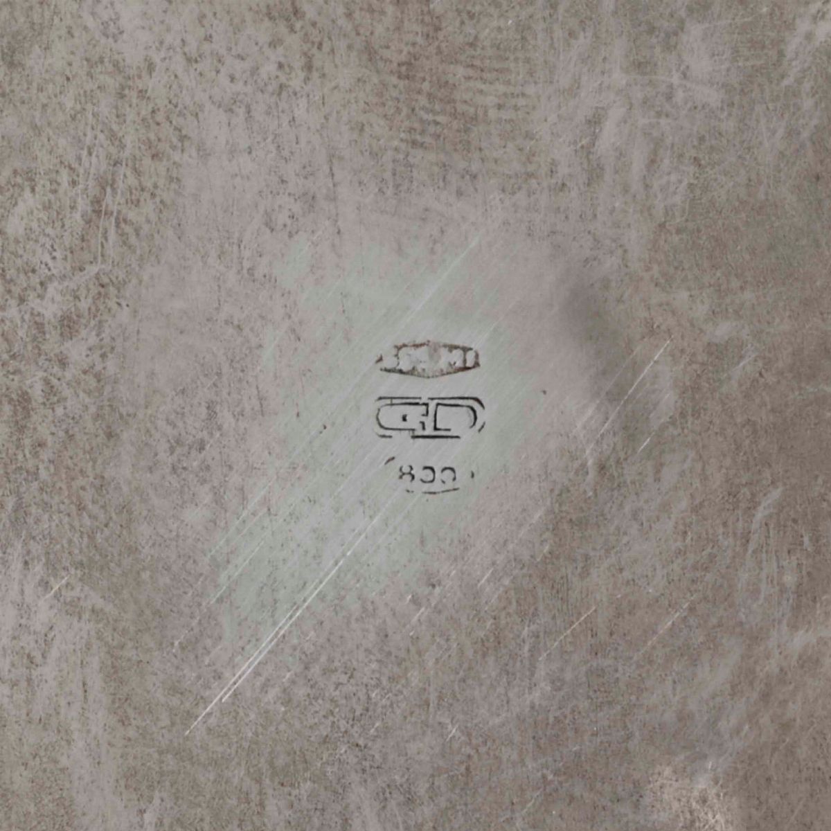 Piatto da portata in argento e vetro. Argenteria milanese del XX secolo. Bollo dell'argentiere consunto di difficile lettura