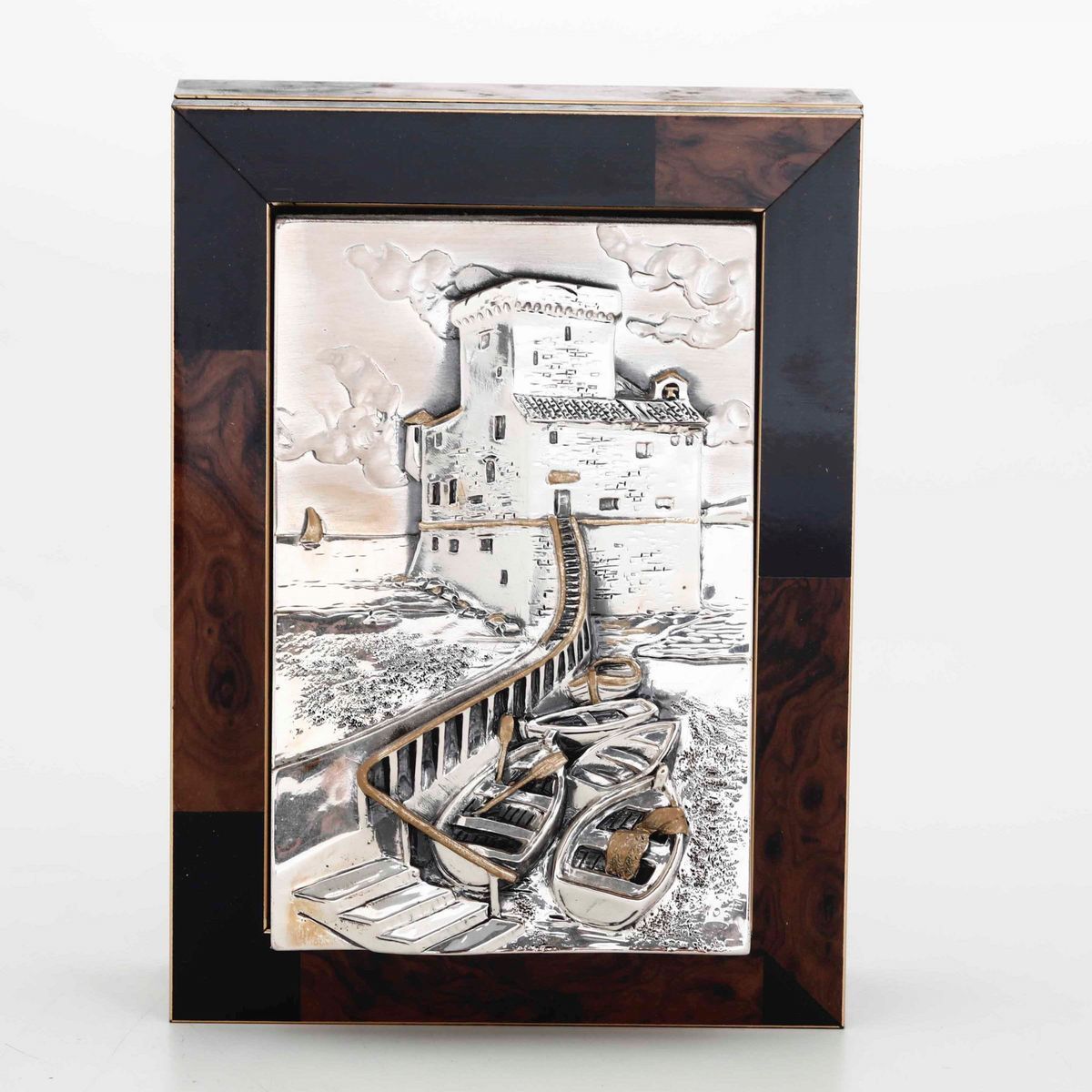 Scatola in legno con coperchio in argento. XX-XXI secolo