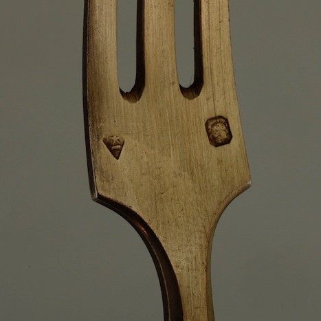 Sei forchette e sei coltelli in argento vermeille. Francia XIX-XX secolo (argentieri differenti)