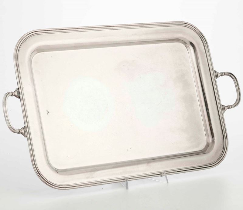 Vassoio biansato in metallo argentato. Cesa Alessandria XX secolo