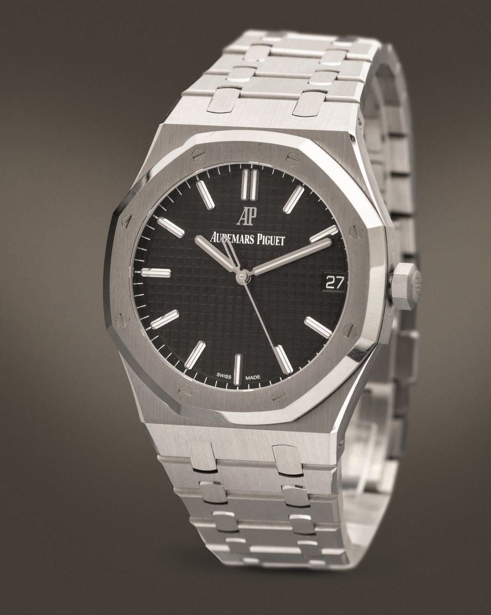 AUDEMARS PIGUET - Royal Oak ref 15500ST in acciaio con quadrante nero, movimento automatico con fondello a vista nuovo con [..]