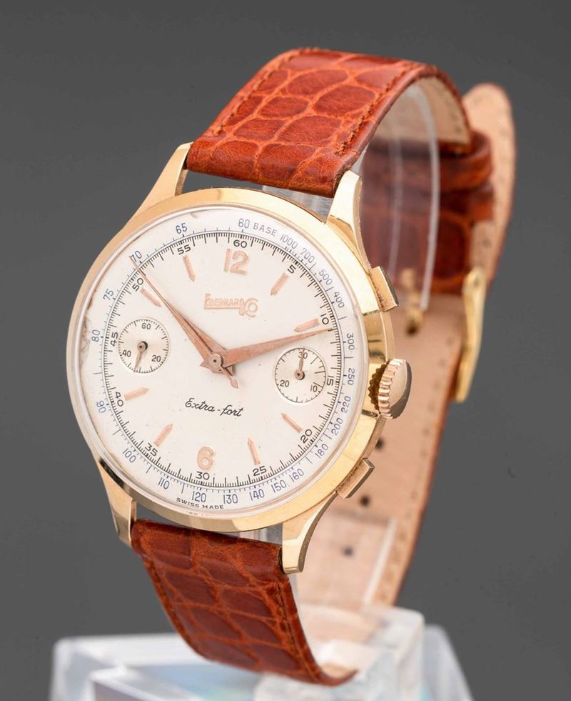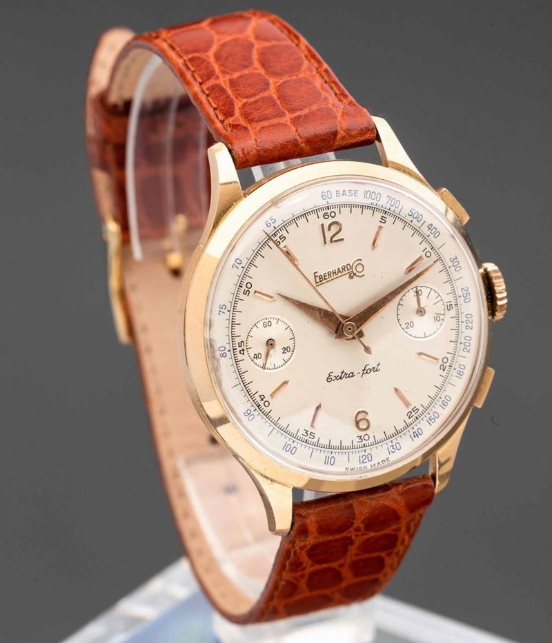 EBERHARD - Extrafort cronografo in oro giallo 18k due contatori, carica manuale, quadrante Argentè con indici applicati
