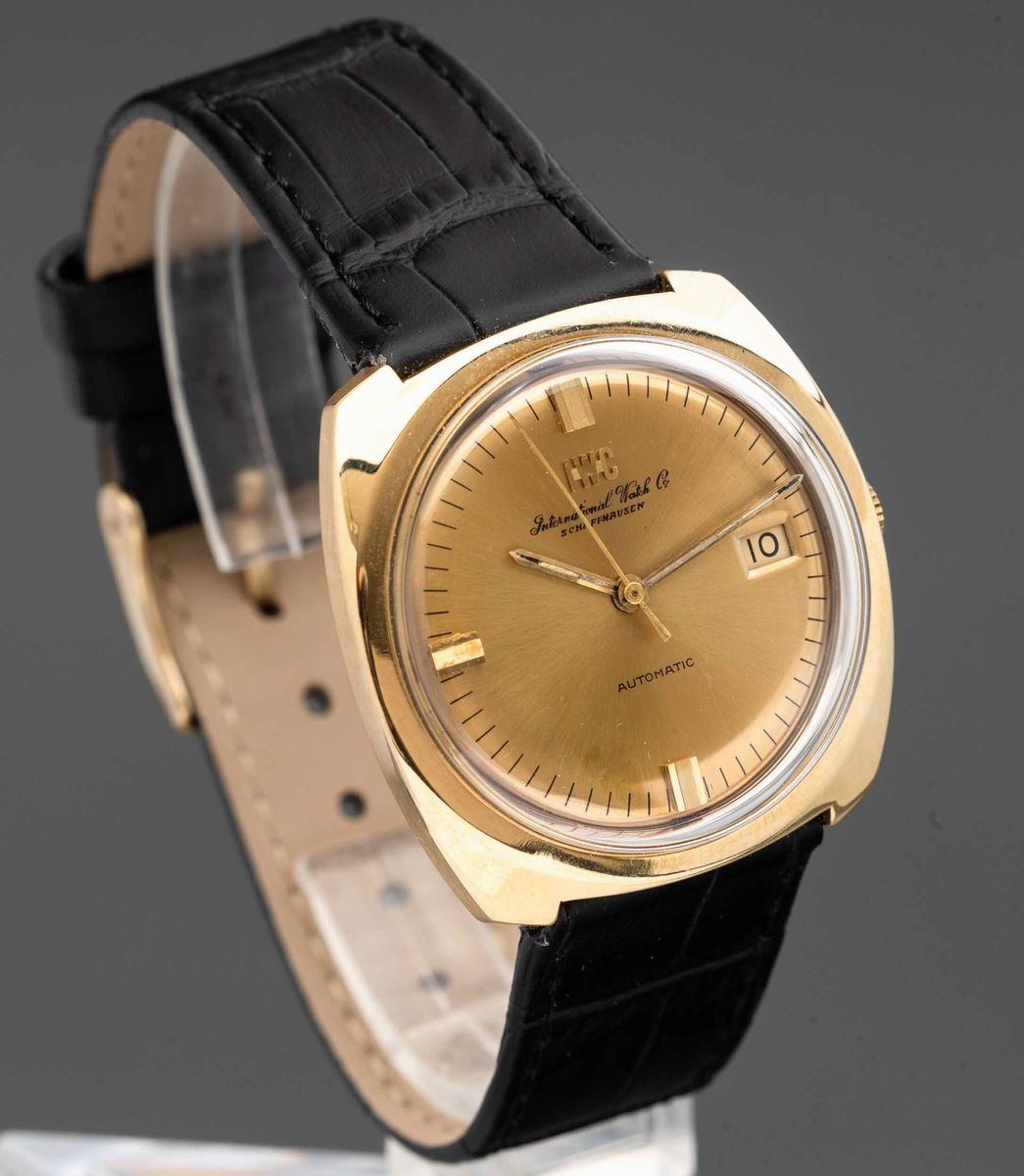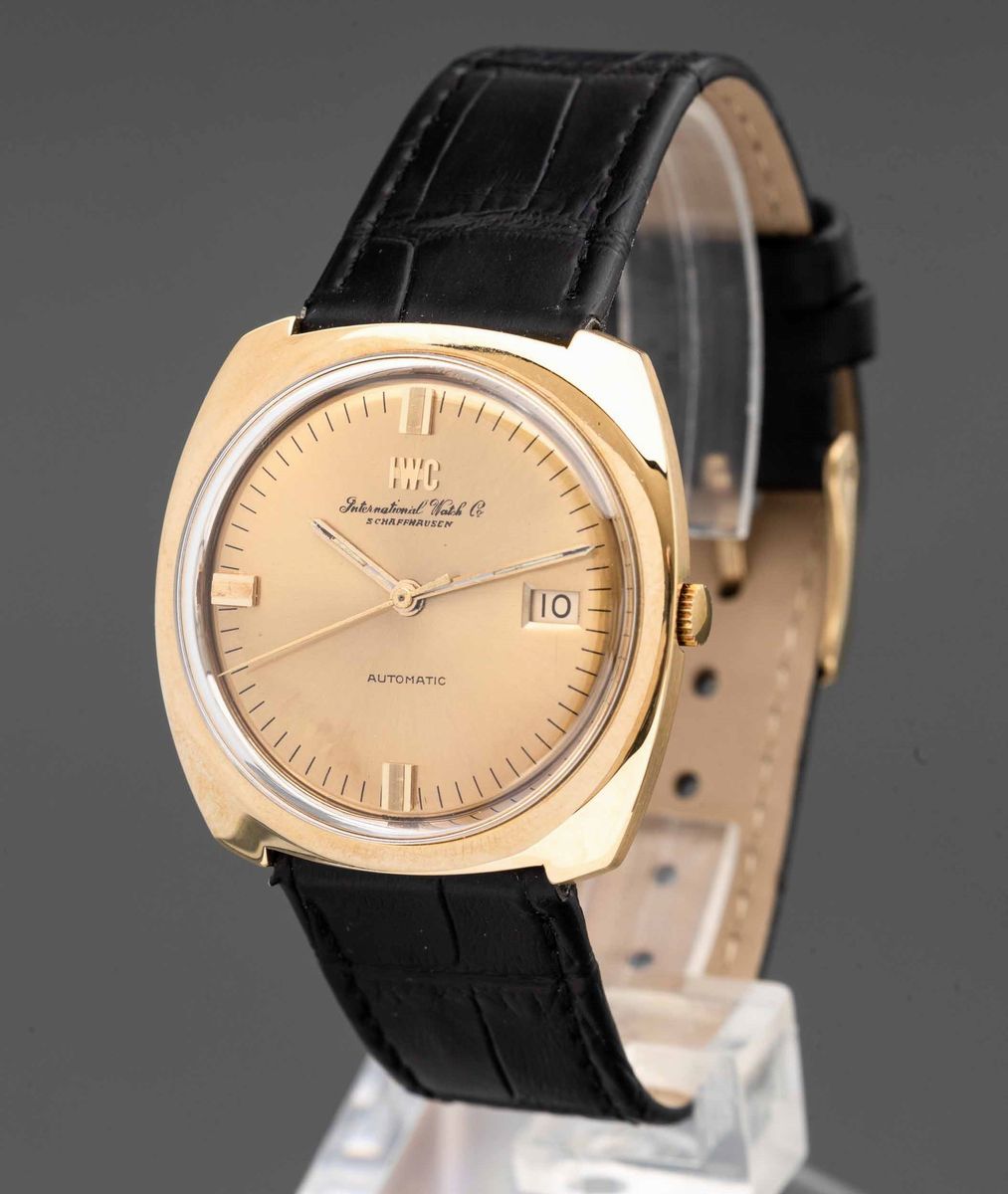 IWC - Orologio in oro giallo 18k tonneau automatico con datario, quadrante champagne