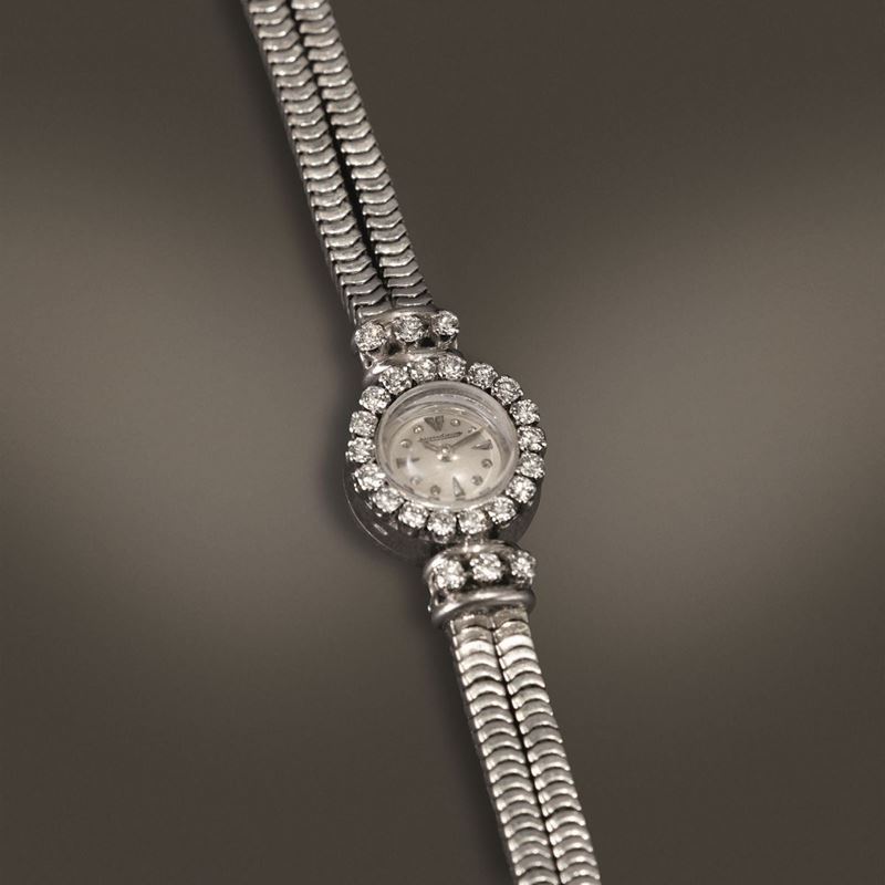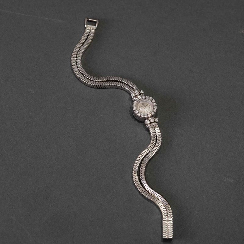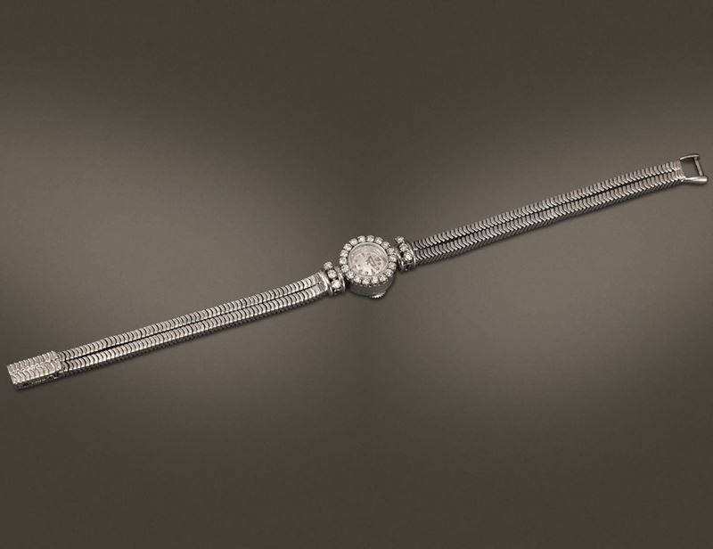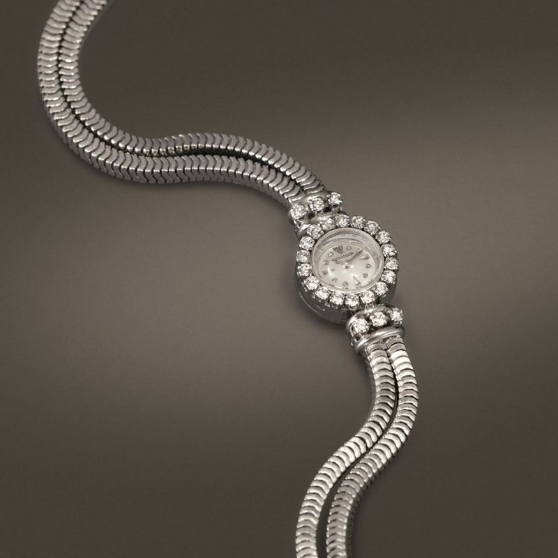JAEGER LECOULTRE - Orologio da sera in oro bianco 18k con diamanti movimento duoplan carica manuale