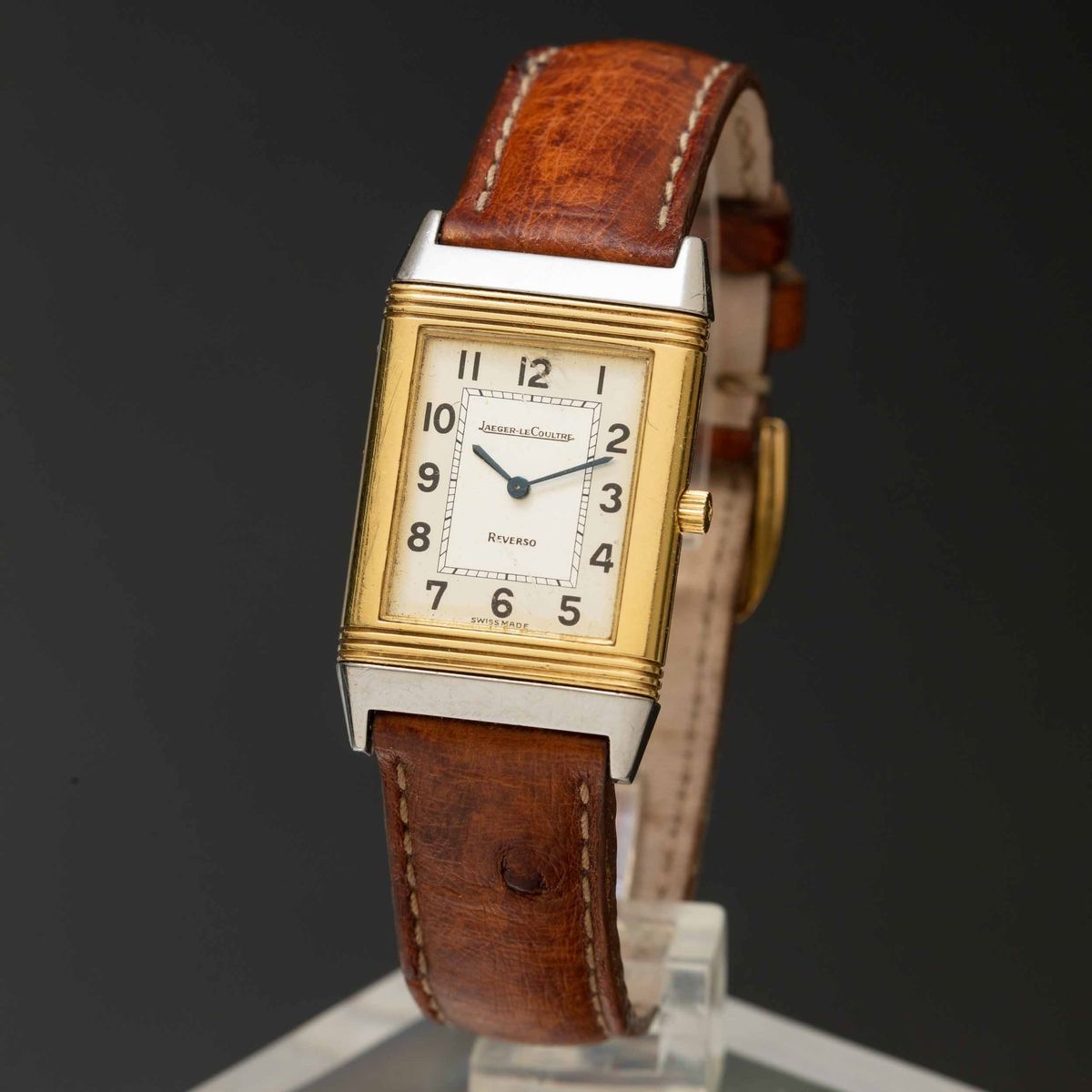 JAEGER LECOULTRE - Reverso acciaio e oro al quarzo quadrante Argentè bitonale con numeri Arabi