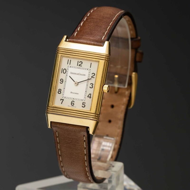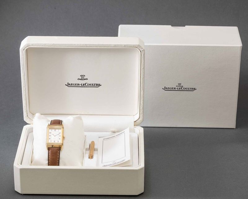 JAEGER LECOULTRE - Reverso in oro 18k al quarzo quadrante Argentè bitonale con numeri Arabi