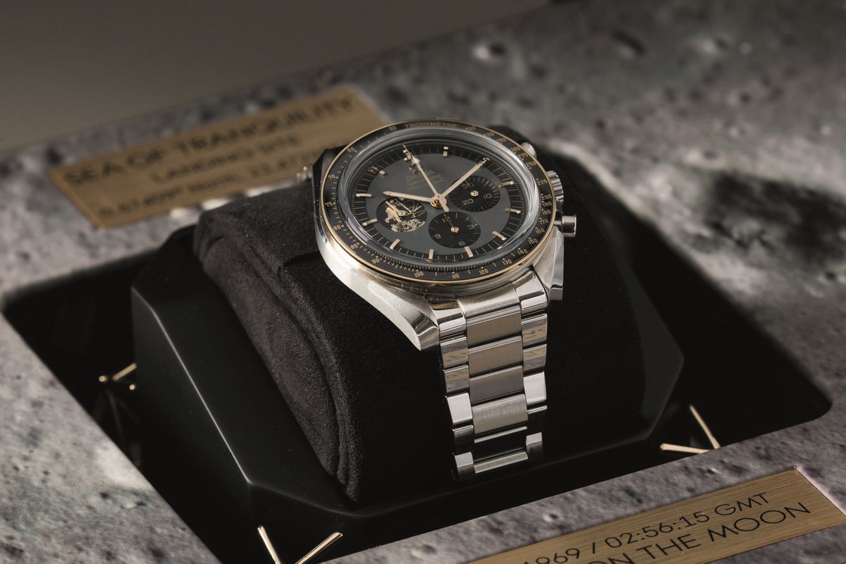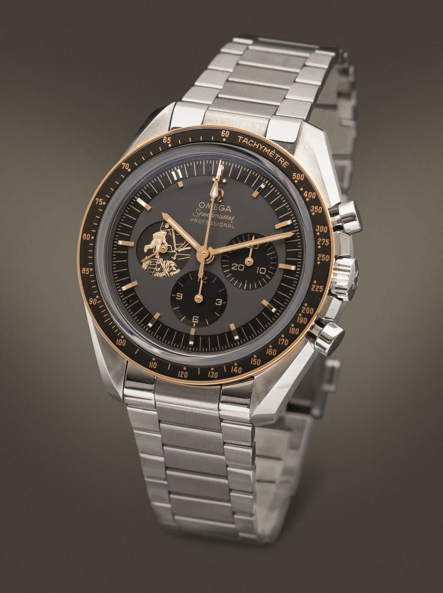 OMEGA - Speedmaster Moonwatch Apollo 11, 50° anniversario, cronografo carica manuale in acciaio con inserti in oro giallo. [..]