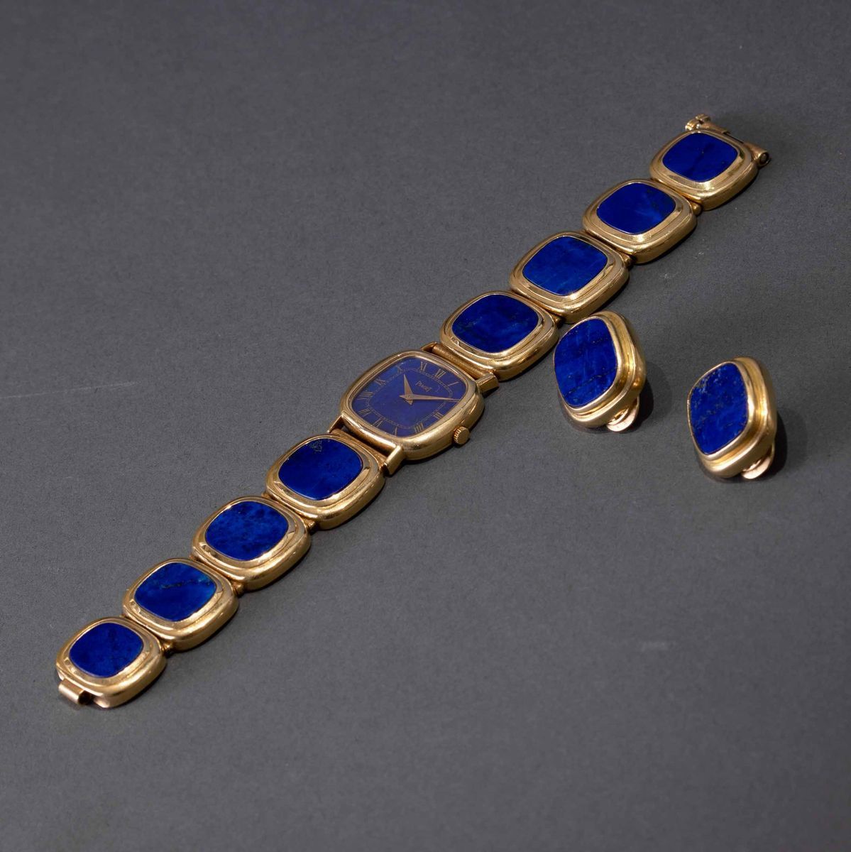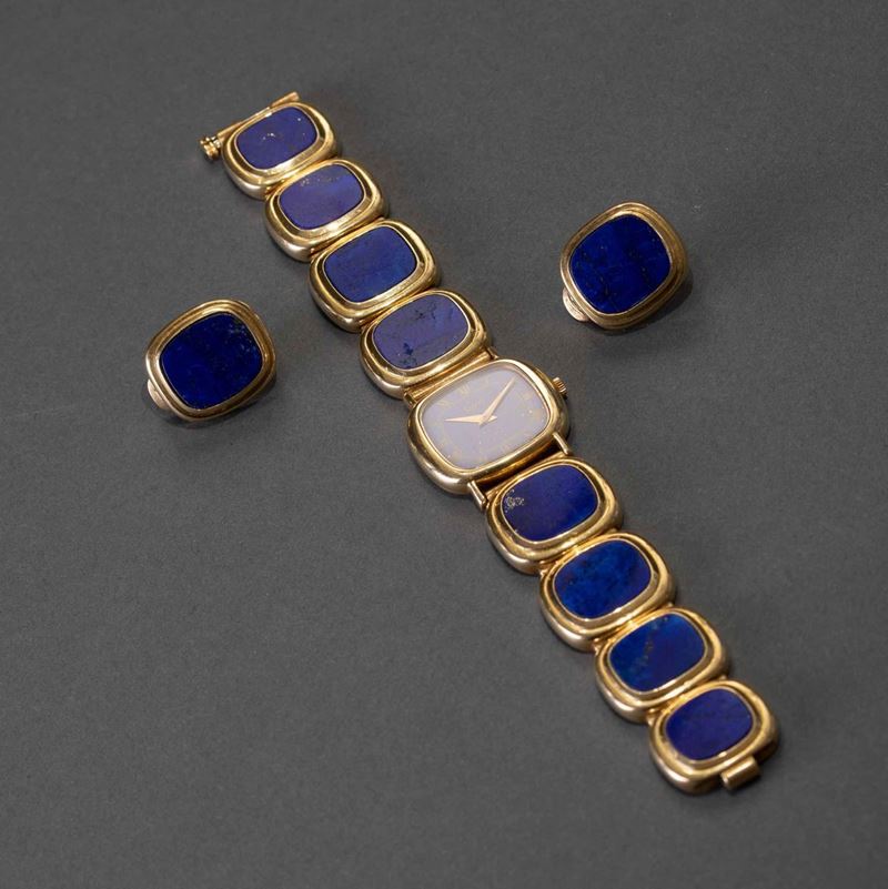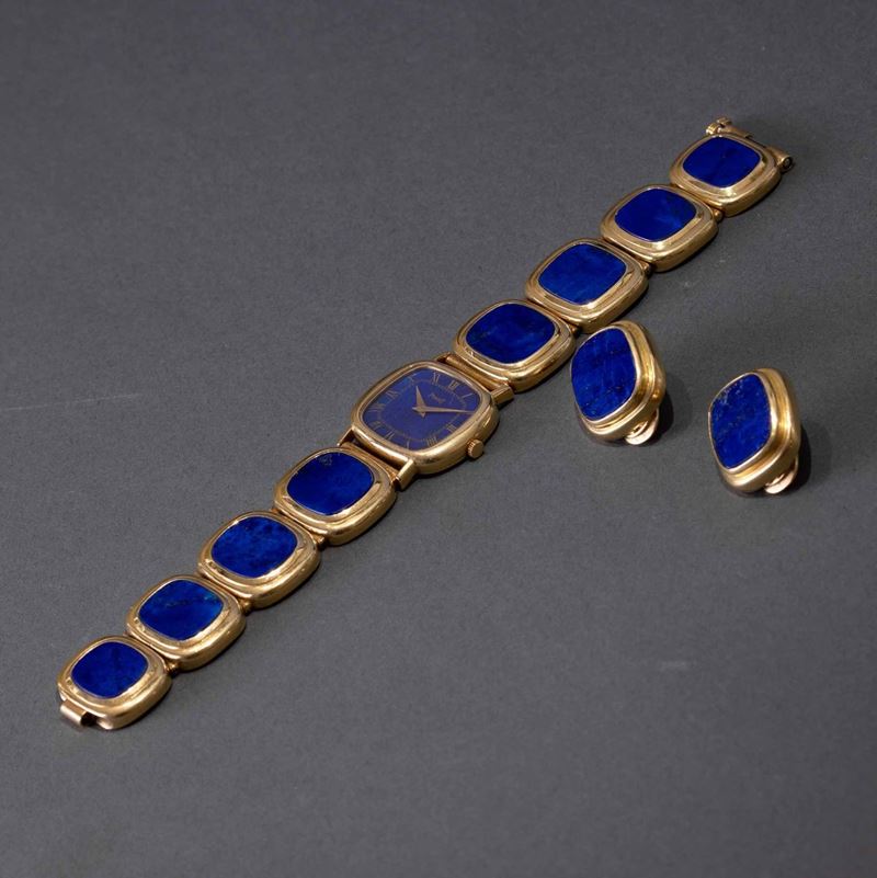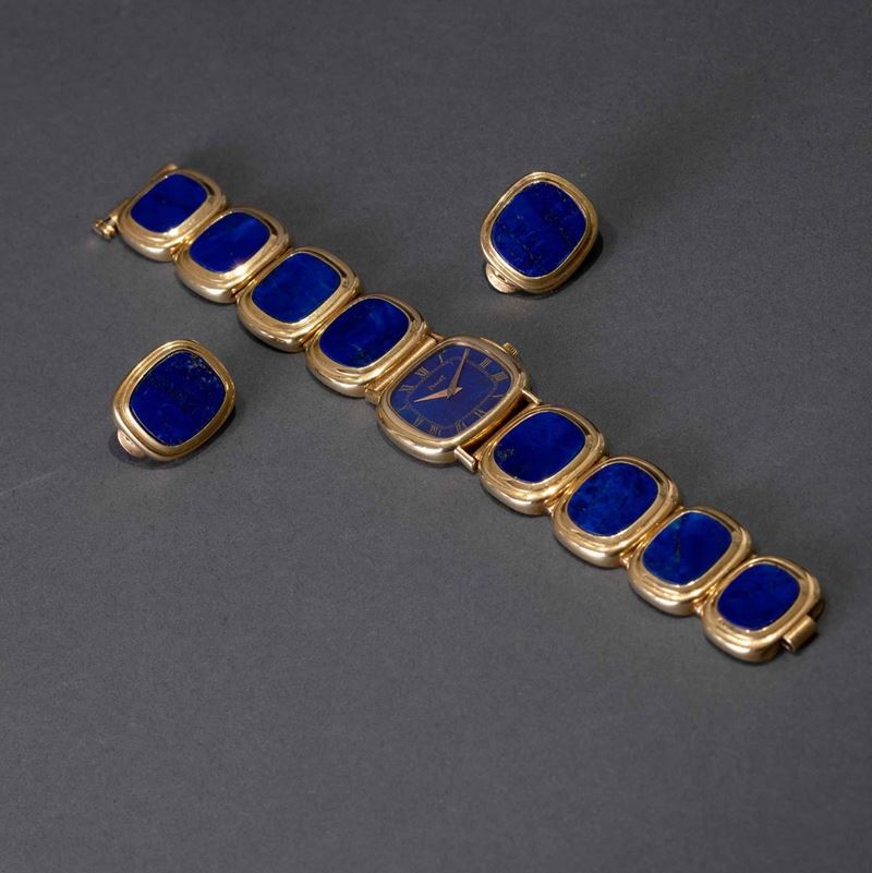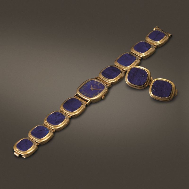 PIAGET - Orologio da sera da donna carica manuale con quadrante in Lapis numeri Romani, bracciale artigianale in oro e orecchini