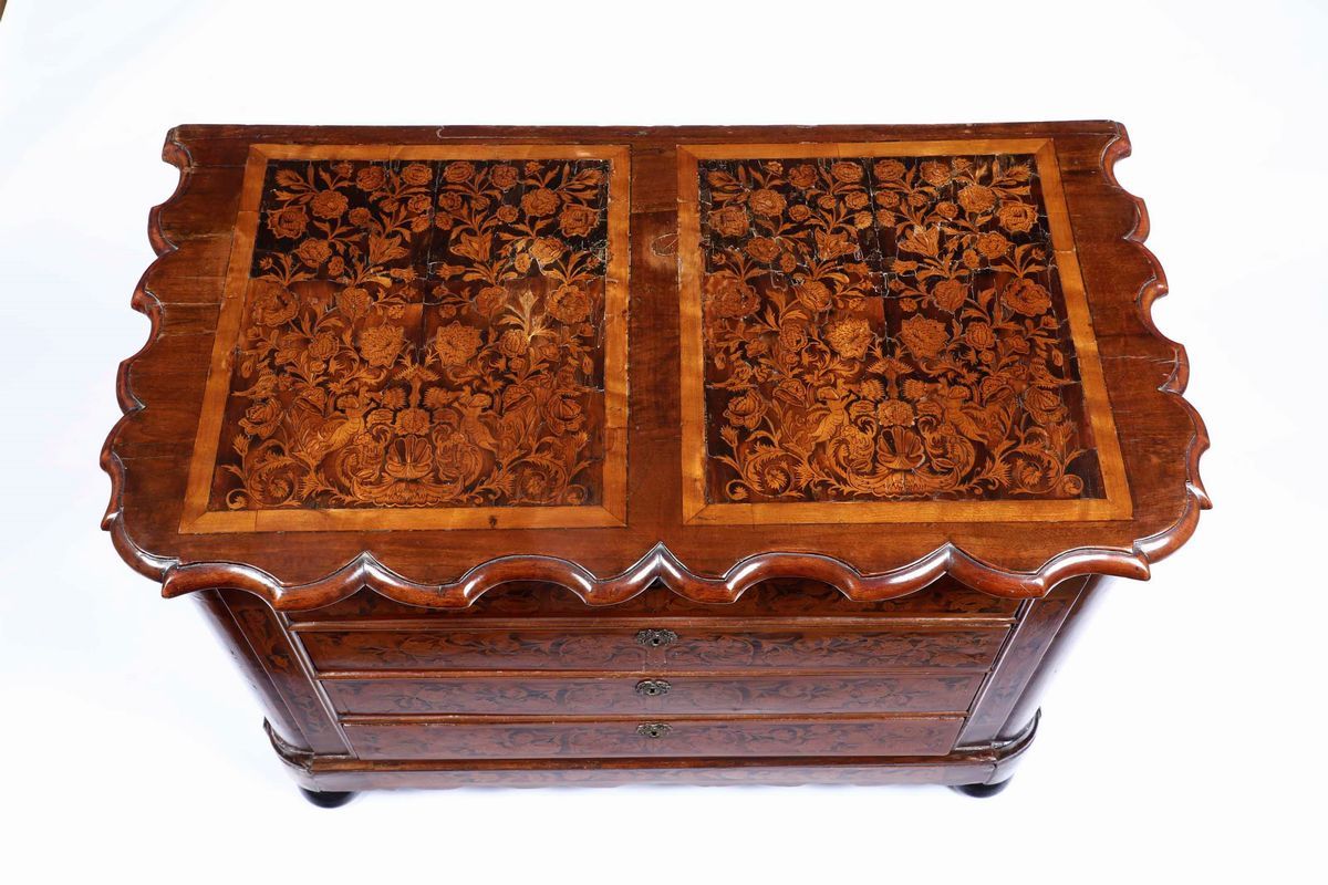 Cassettone lastronato e intarsiato. Olanda, XVIII-XIX secolo