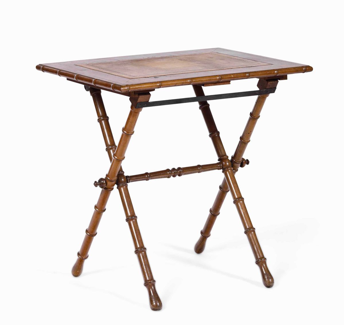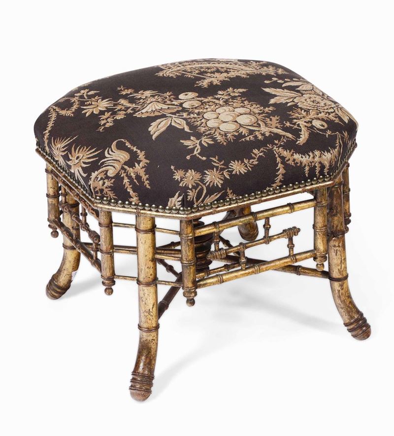Lotto composto da tavolo rettangolare e sgabello in finto bambù