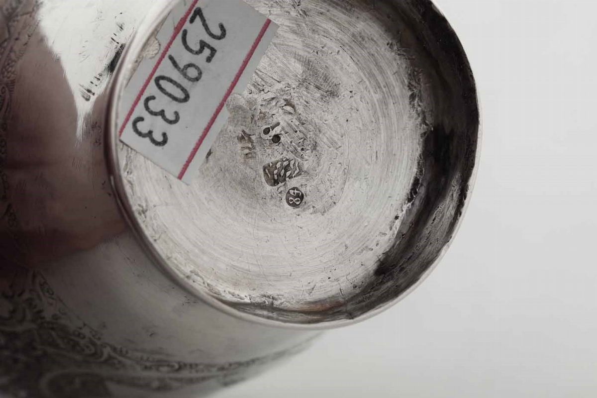 Bicchiere per il Kiddush. Argento sbalzato e cesellato. Russia, Persia XIX secolo