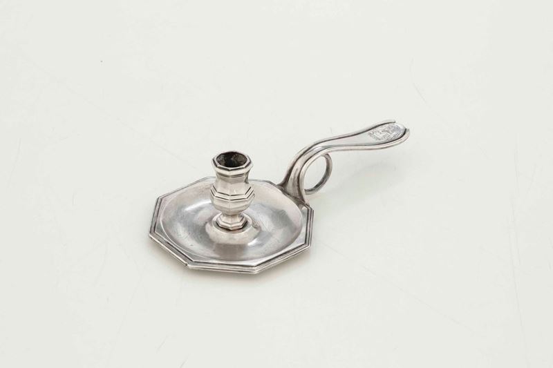 Bugia. Argento fuso, sbalzato e cesellato. Roma seconda metà del XVIII secolo. Marchio dell’argentiere consunto di difficile lettura
