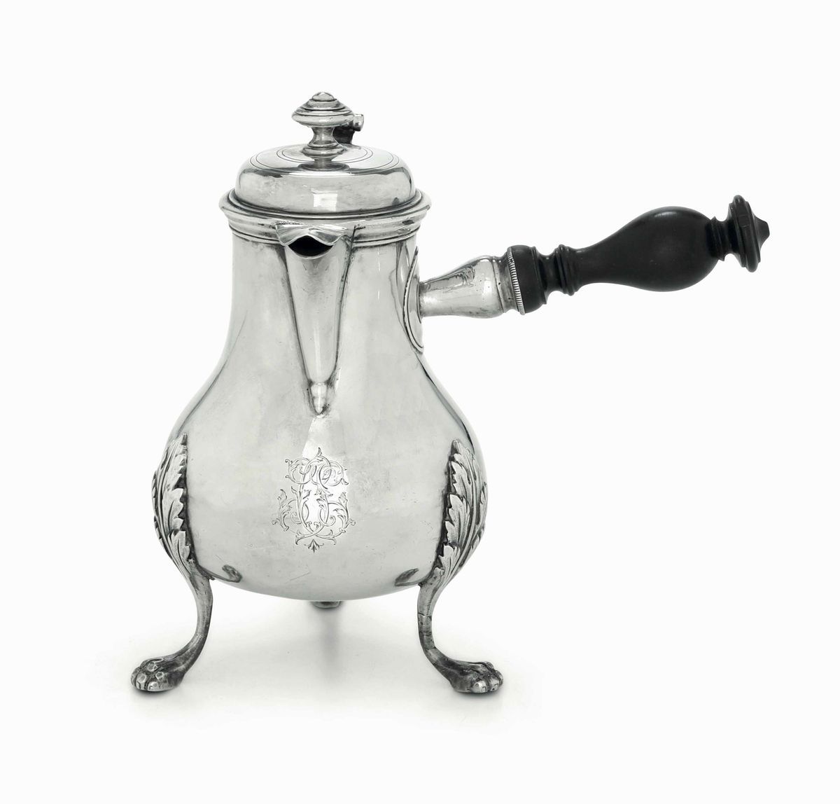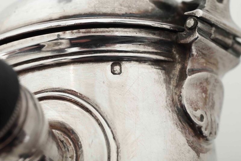 Caffettiera. Argento primo titolo fuso, sbalzato e cesellato. Francia XIX secolo