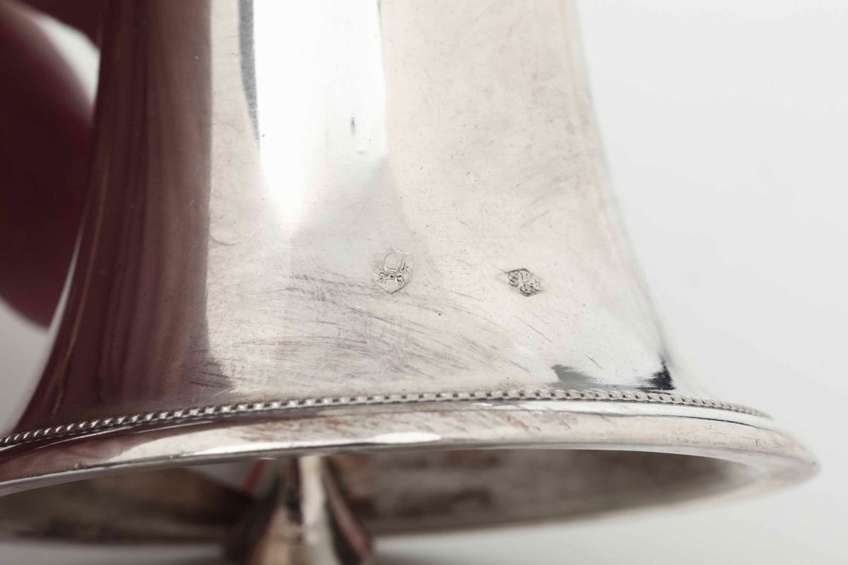 Campanello. Argento fuso, tornito e cesellato. Roma XIX secolo, maestro argentiere Pietro Paolo Spagna (1817-1861)