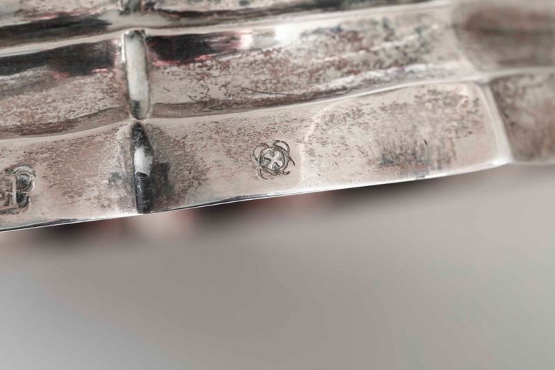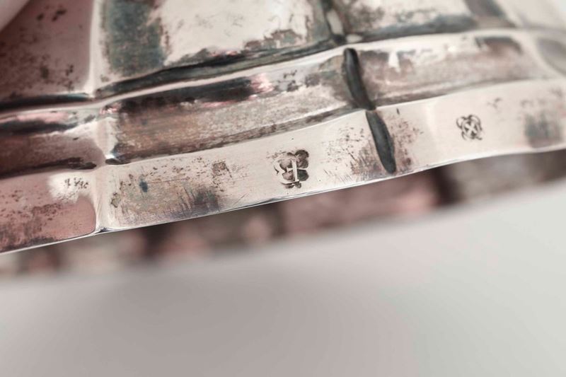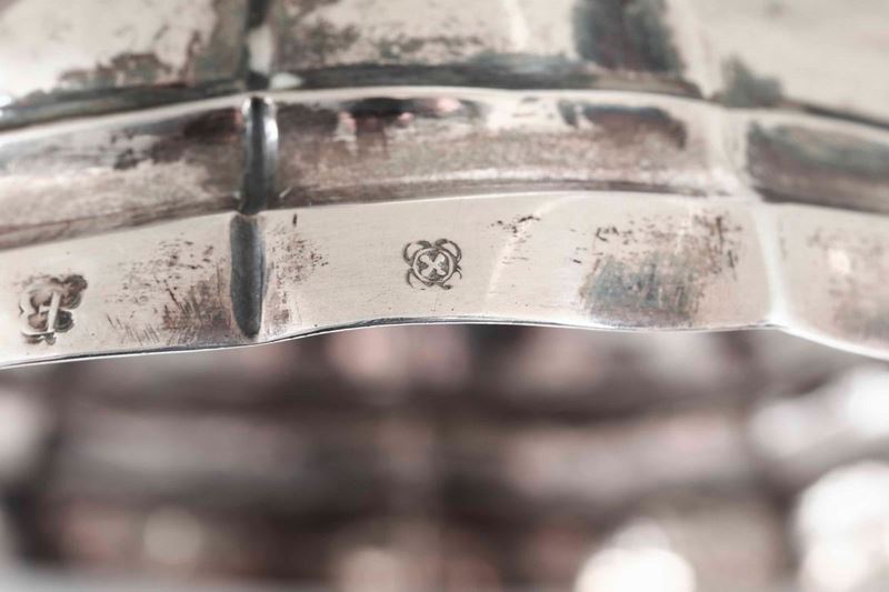 Coppia di candelieri. Argento fuso, sbalzato e cesellato. Reggio Emilia seconda metà del XVIII secolo. Marchio dell’argentiere FB (?) non identificato