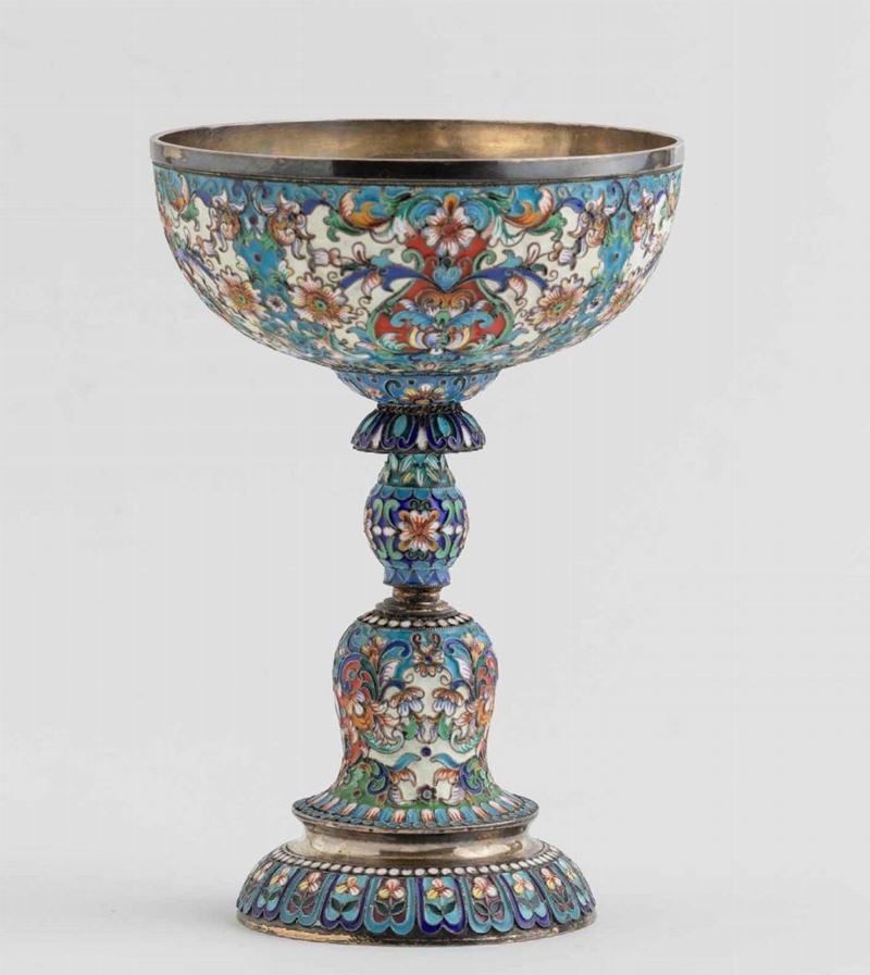 Grande coppa. Argento e smalti colorati. Manifattura russa del XX secolo