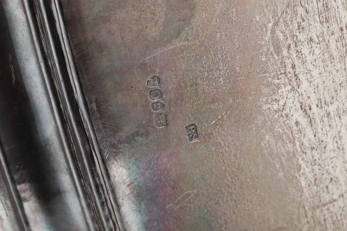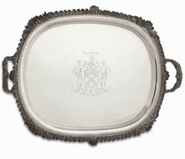 Grande vassoio. Argento sterling fuso, sagomato e cesellato. Bollo della città di Londra per l'anno 1817. Argentiere Benjamin Smith