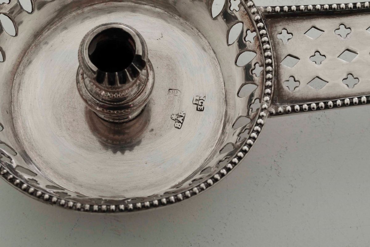 Palmatoria. Argento fuso, sbalzato e traforato. Barcellona seconda metà del XVIII secolo
