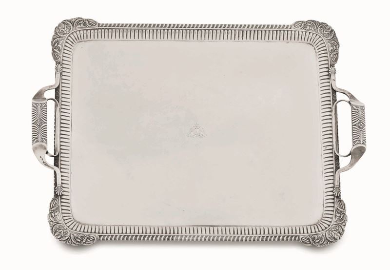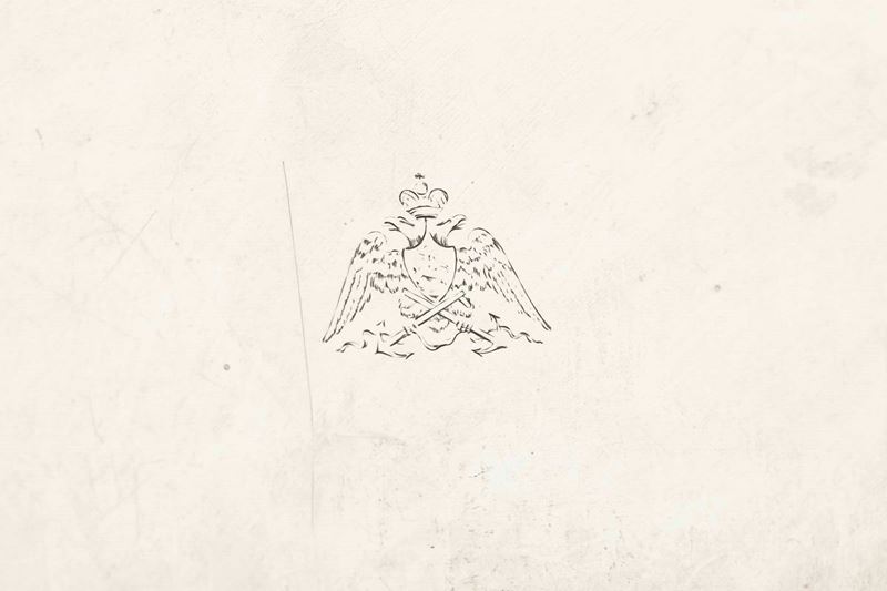 Vassoio. Argento fuso, sbalzato e cesellato. Sanpietroburgo 1830. Assaggiatore M.Karpinskiy. Marchio dell’argentiere consunto di difficile lettura
