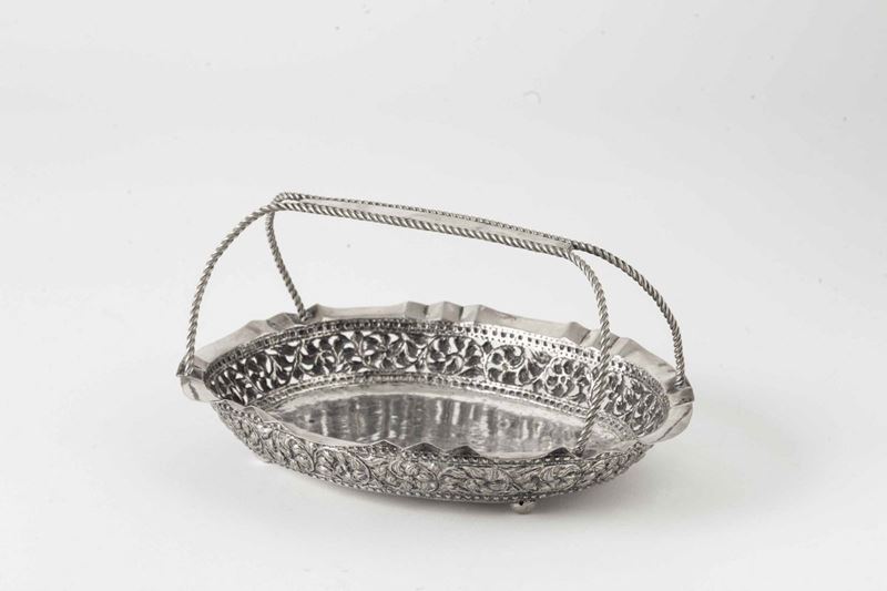 Cestino. Argento fuso, sbalzato e traforato. Cina XX secolo