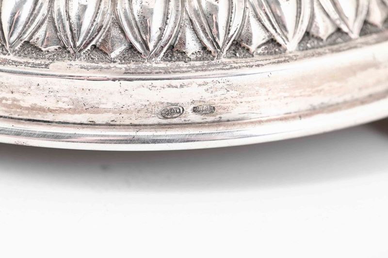 Coppia di candelabri. Argento fuso, sagomato e cesellato. Argenteria artistica italiana del XX Secolo. Argentiere I.M.A [..]