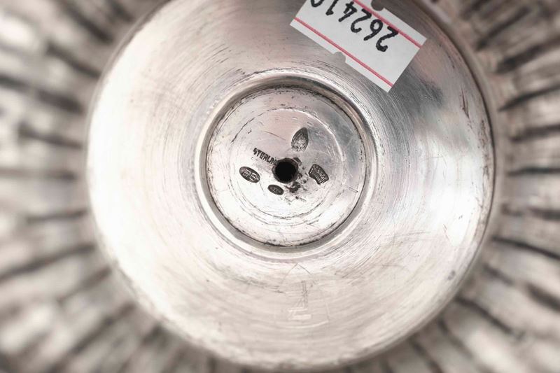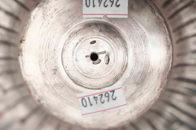 Coppia di candelabri. Argento sterling fuso, sagomato e cesellato. Argenteria artistica lombarda del XX secolo. Argentiere [..]