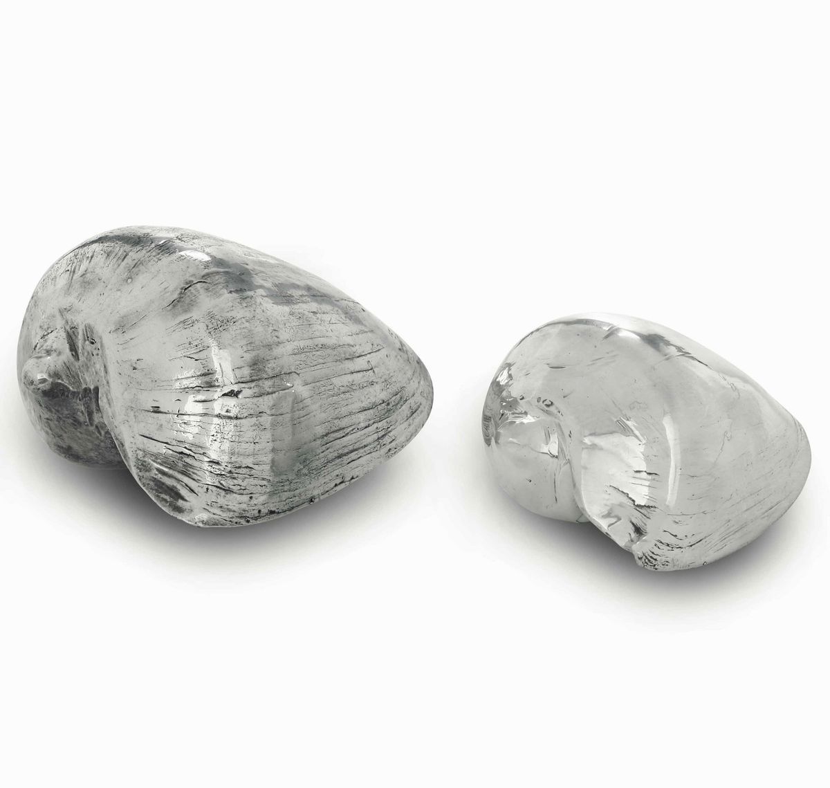 Due conchiglie rivestite in argento. Argenteria artistica del XX-XXI secolo. Firma Mario Buccellati su etichetta a scudo in argento