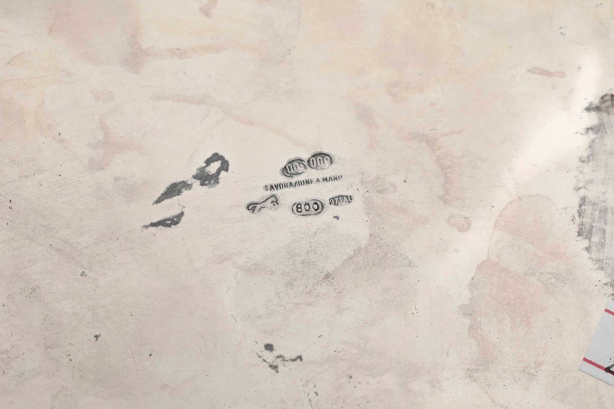 Portagioie. Argento fuso, sagomato e cesellato, castone con pietra blu cabochon. Argenteria artistica italiana del XX secolo. Argentiere entico Goretta, Alessandria