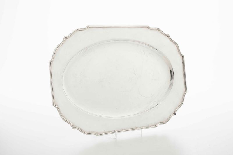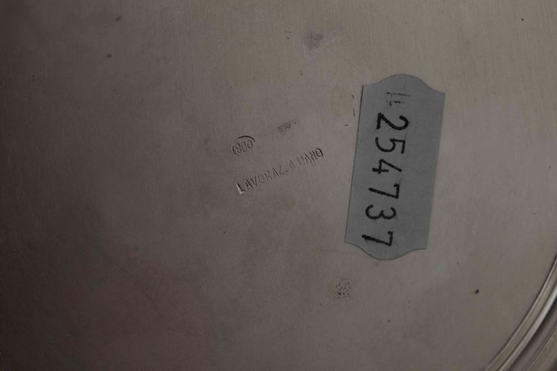 Secchiello e vassoio. Argento fuso e sagomato. Argenteria italiana del XX secolo. Marchio con fascio littorio in uso da [..]