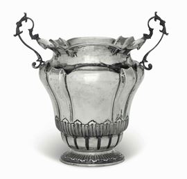 Vaso biansato. Argento fuso, sagomato e cesellato. Argenteria artistica italiana del XX secolo. Argentiere Peruggia, Alessandria