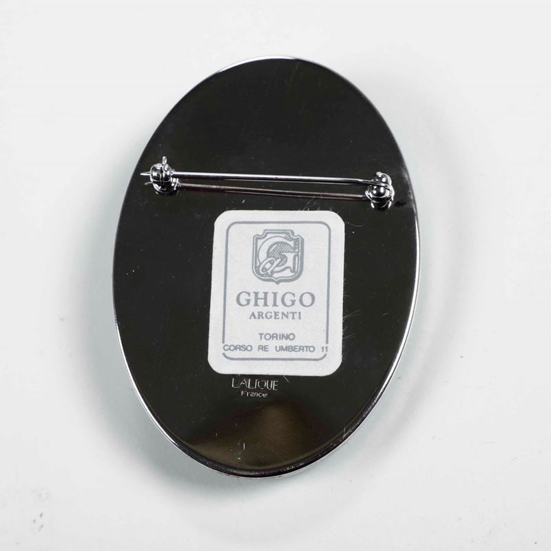 Spilla Gufo. Cristallo verde con montatura in argento. Lalique, Francia