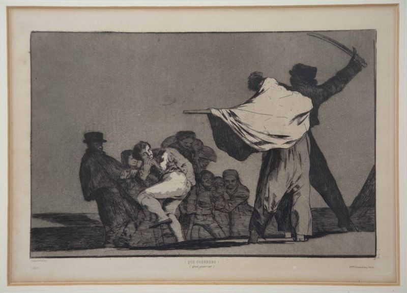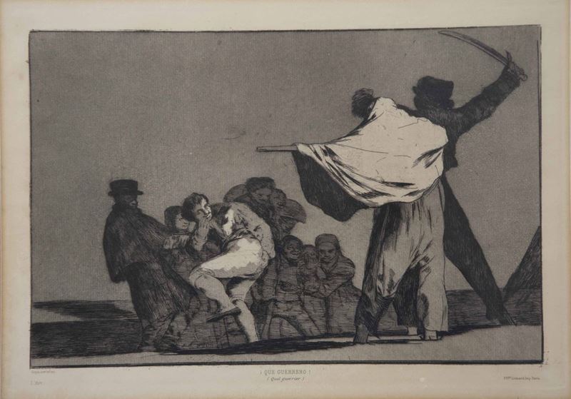 2)"Dos a uno meten la paja en el culo". Pubblicata da "L'art" a Parigi con il titolo "Che Guerrero". Edizione del 1877. Acquaforte, acquatinta e puntasecca. Harris 266 III