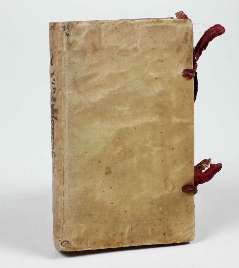 In-4°. Rilegatura antica in piena pergamena floscia. Bell’esemplare fresco e marginoso. Illustrazioni calcografiche nel testo. Lacci di chiusura ai piatti.
