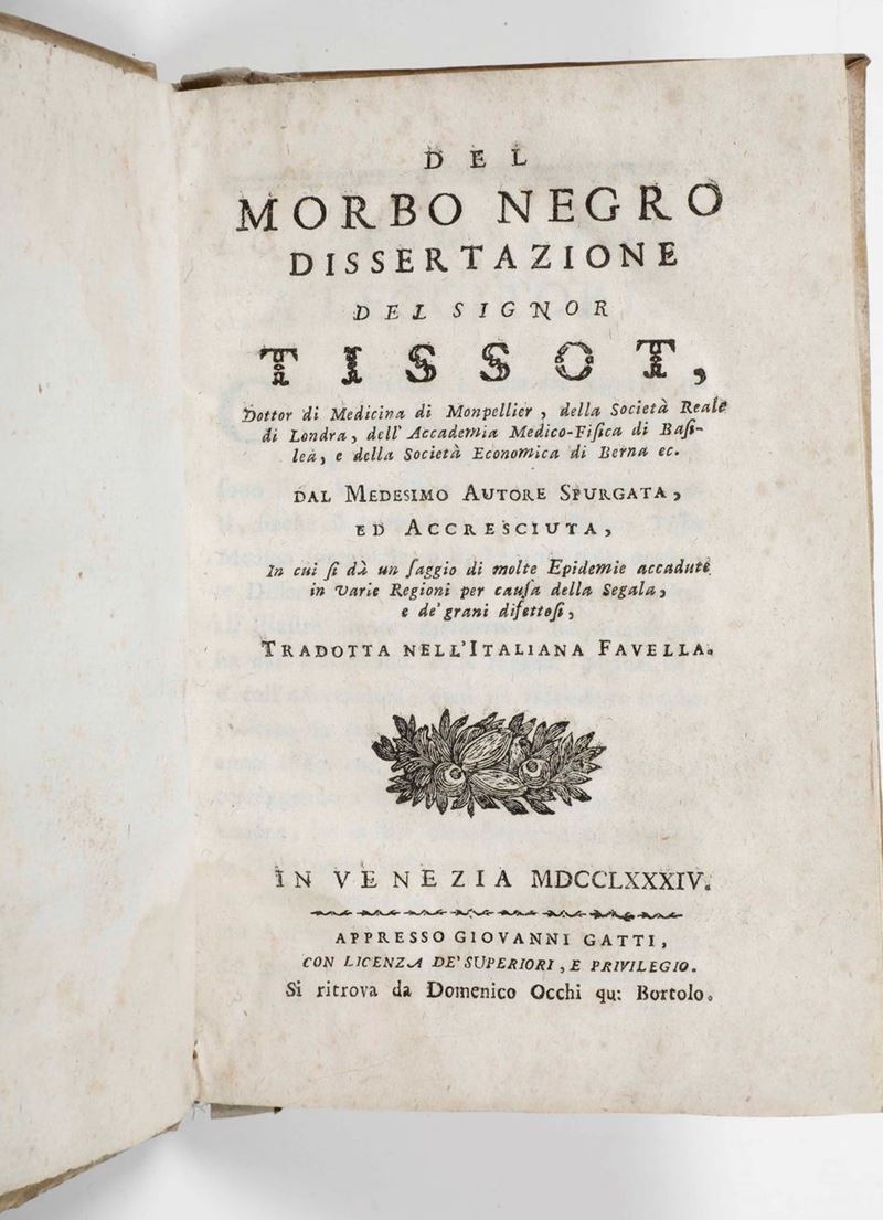 Del morbo negro dissertazione del Signor Tissot, Dottor di Medicina di Monpellier, della Società Reale di Londra, dell’Accademia Medico-Fisica di Basileae della Società di Economia di Berna...In Venezia, appresso Giovanni Gatti, 1784
