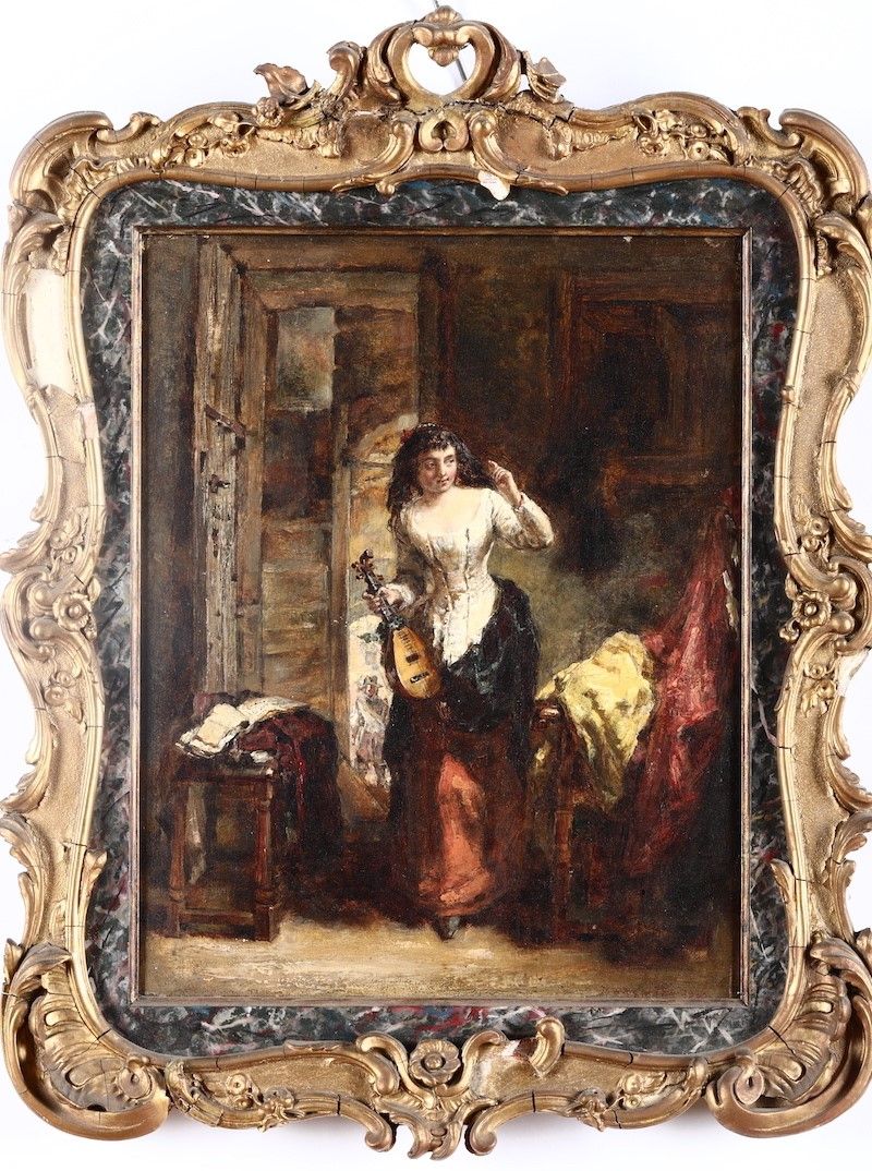 Daniel Pasmore (attivo tra il 1829 e il 1891) Figura femminile con mandolino