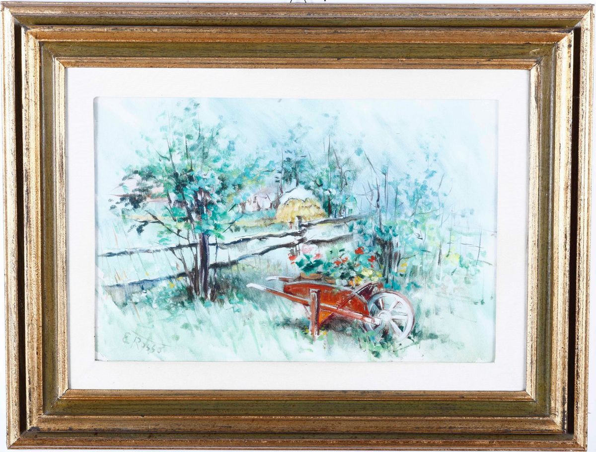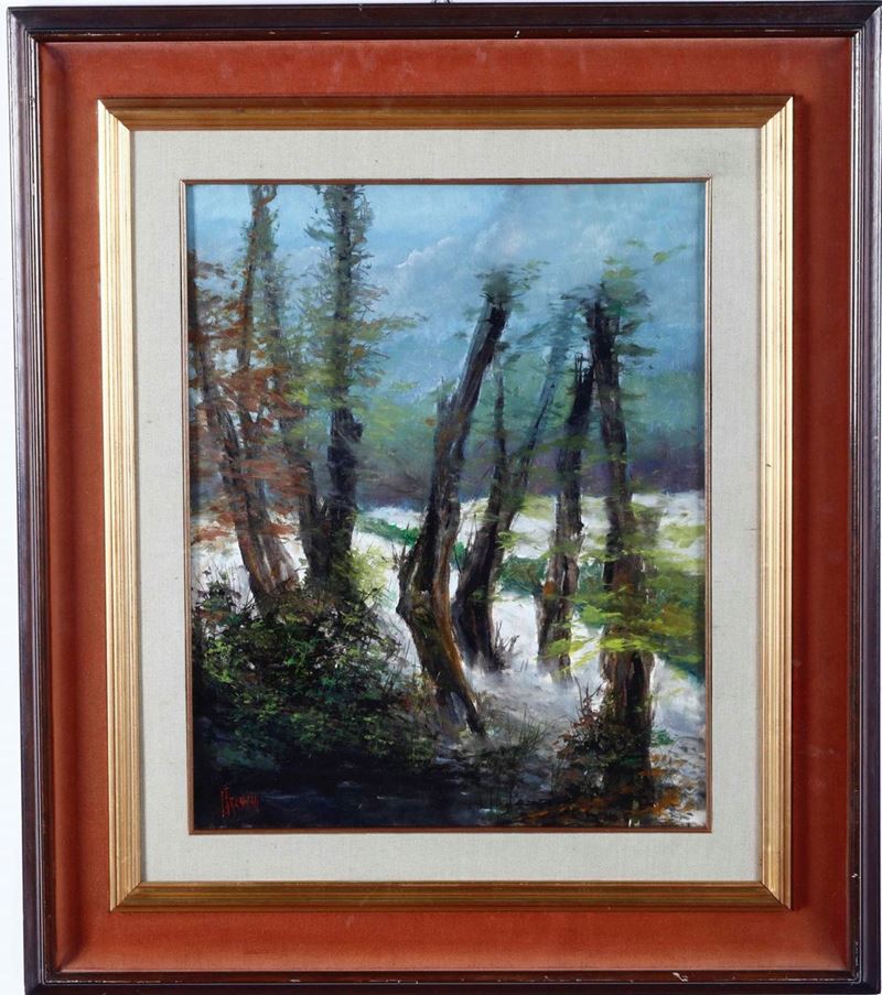 tra cui Enrica Rosso Paesaggi cm 40x60- Franco Franchi paesaggio con alberi cm50x70-Veduta di porticciolo cm 55x57