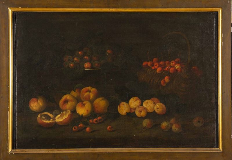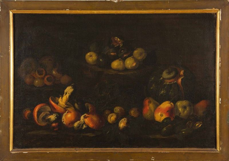 Scuola del XVII secolo Nature morte con con frutti e funghi
