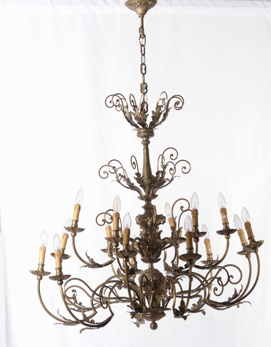 Coppia di lampadari in metallo, XX secolo
