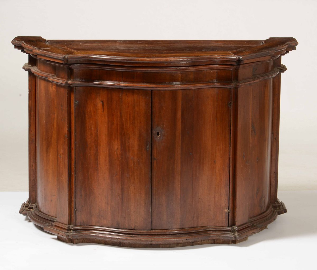Credenza di forma mossa in noce. XIX secolo