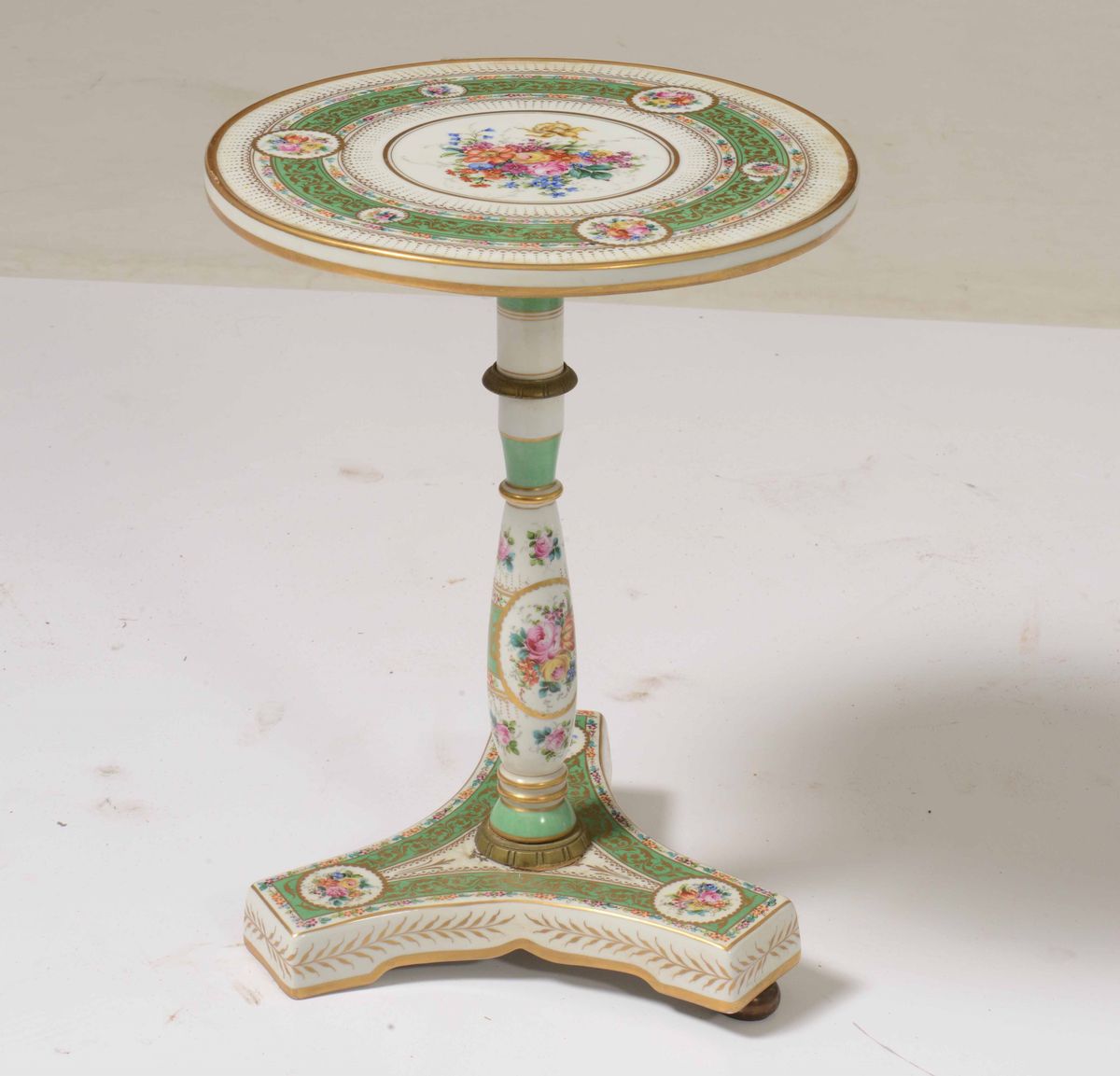 Tavolino in porcellana decorata in policromia e dorature, XX secolo