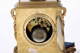 Trittico da camino composto da orologio e coppia di candelabri in bronzo e smalti. XIX-XX secolo