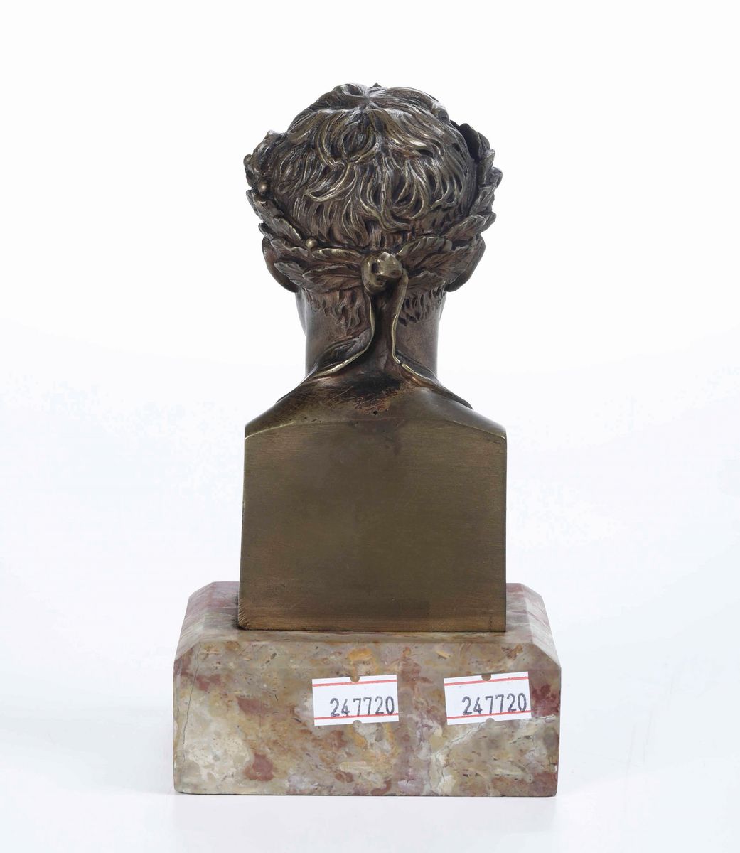 Busto in bronzo raffigurante Napoleone, su base in marmo rosa maculato. XIX secolo
