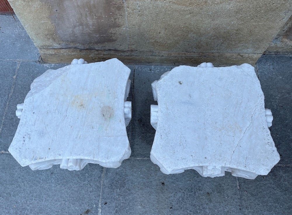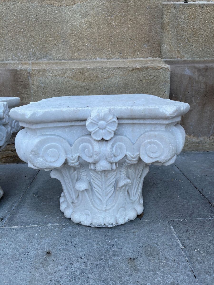 Coppia di capitelli in marmo bianco di Carrara. XX secolo