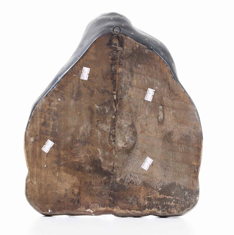 Gruppo raffigurante Madonna con Bambino e angeli. Papier-machè dipinto e legno. Probabile XX secolo
