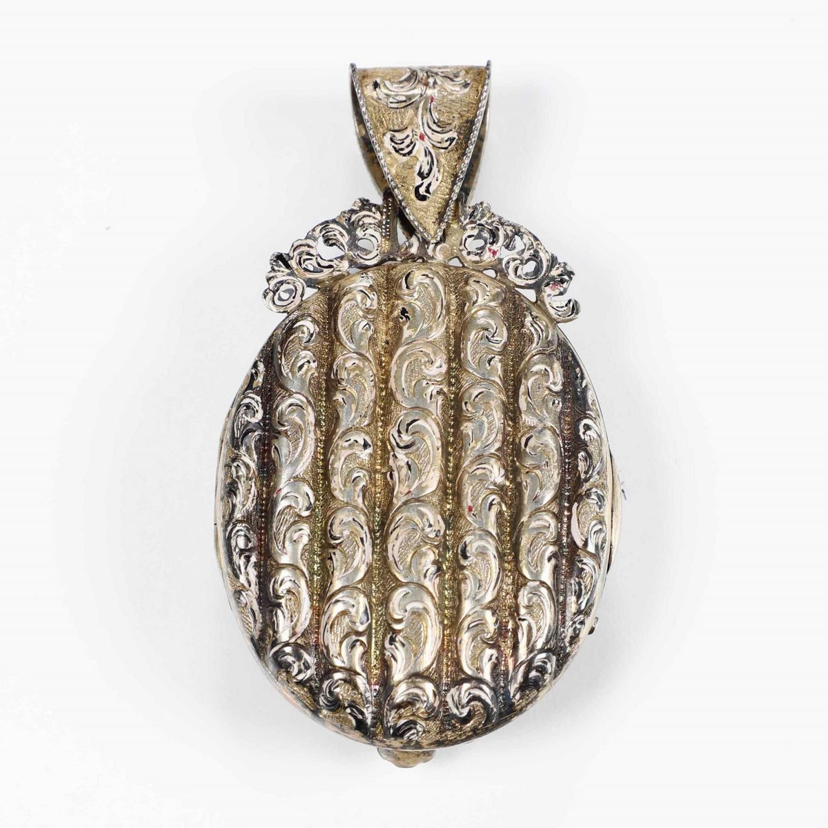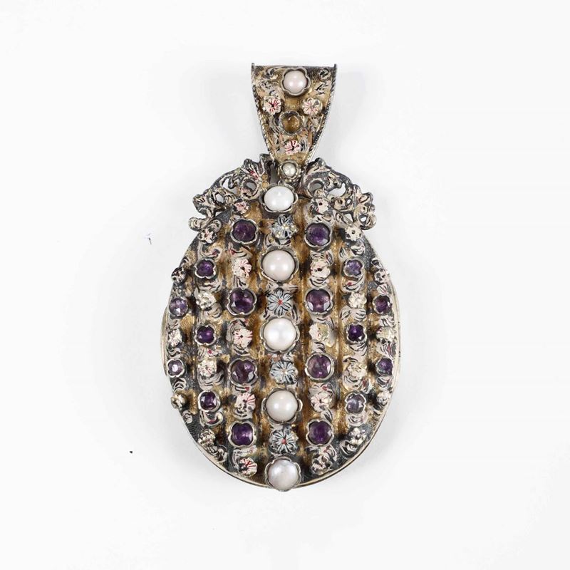 Luigi Gandolfi (1810-1869). Signed miniature within a gilt chiselled silver case with amethysts and pearls on the lid. 3.4x2.6cm (the miniature), 6.7x3.8cm (the case)