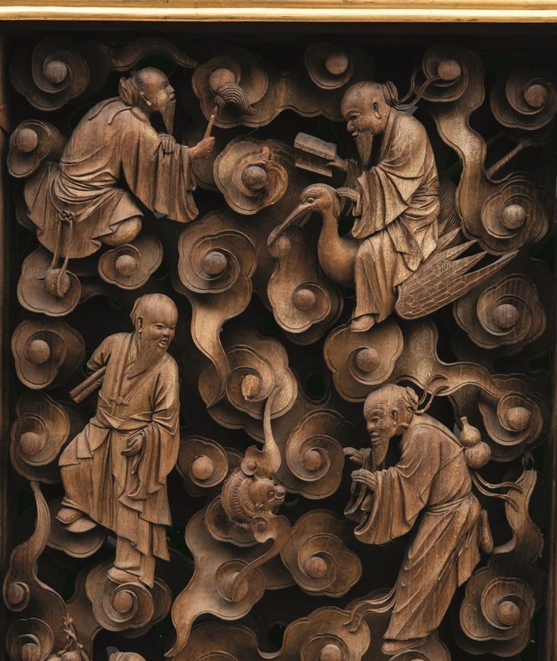 A carved wood panel, China, Qing Dynasty