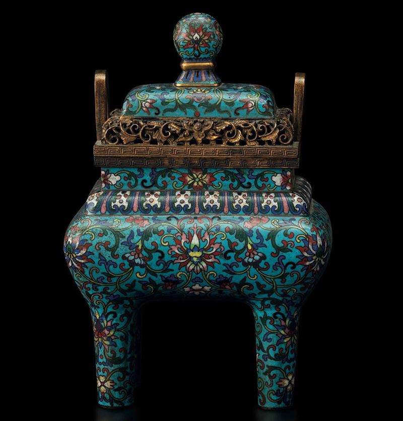 A cloisonné enamel censer, China, Qing Dynasty