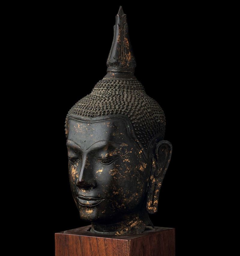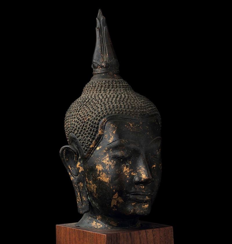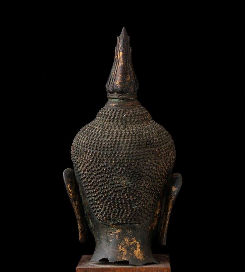 A partly gilt bronze Buddha head, Thailand, 1700s