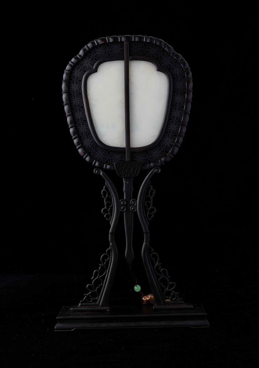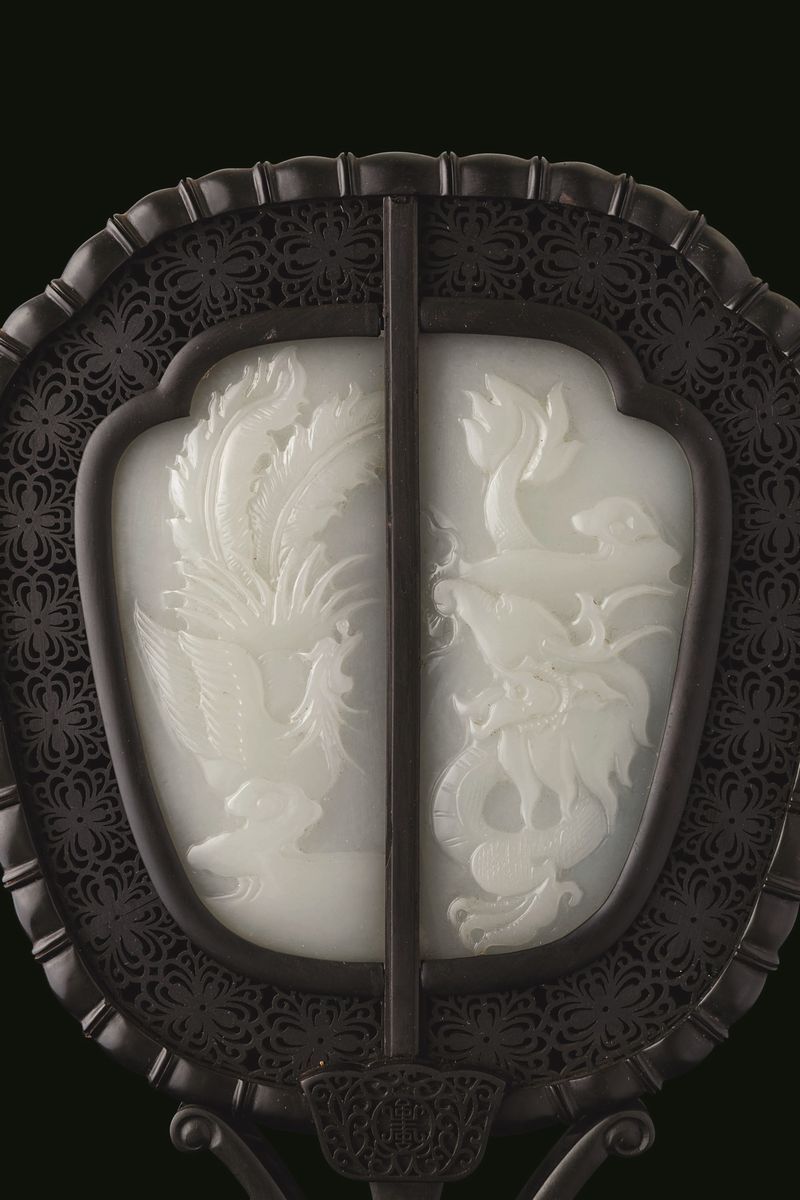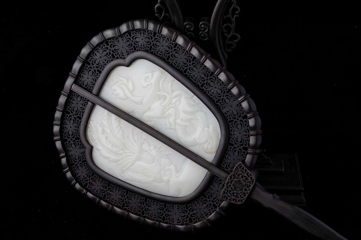 With carved white jade plaques