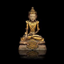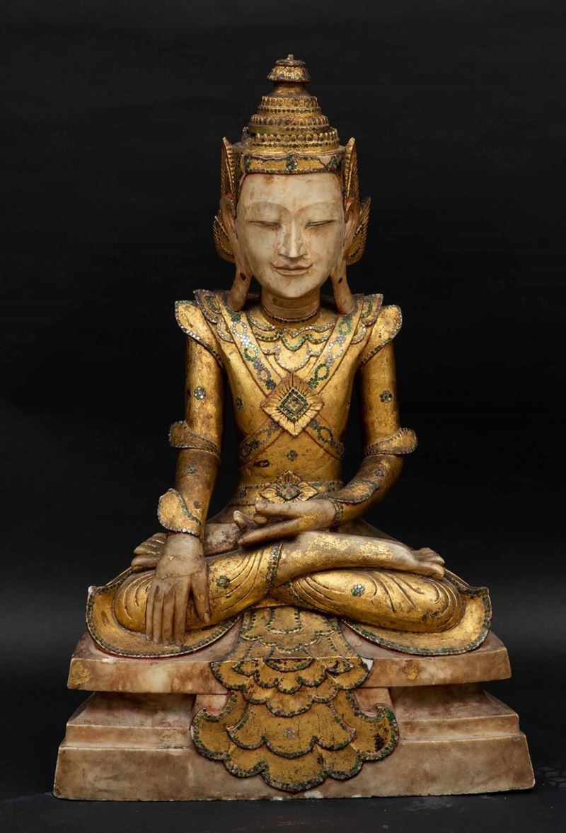 An alabaster and gilt wood Buddha Sakyamuni, Thailand